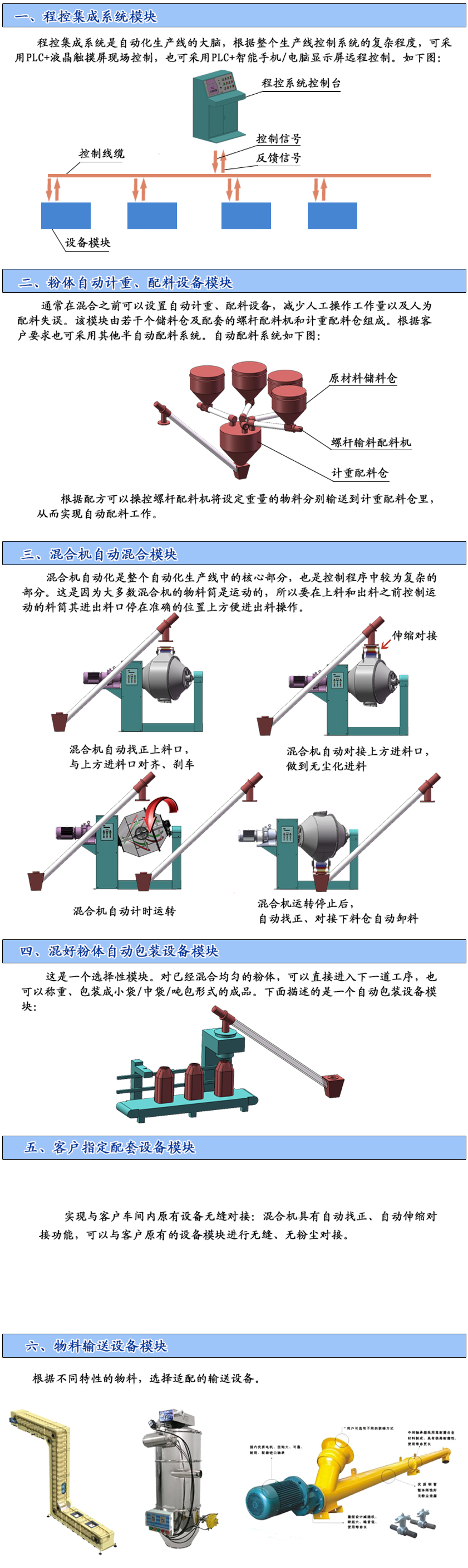 以下是自動化粉體配料生產線的模塊內容: