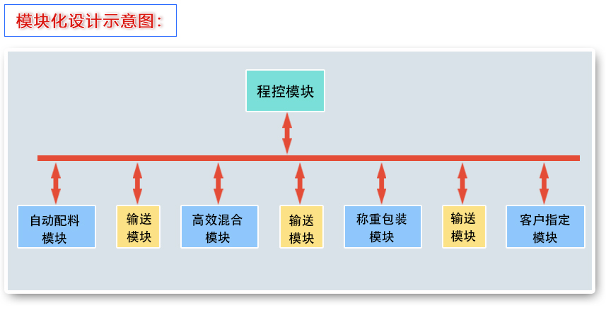 模塊化設計自動化粉體配料生產線是為了對復雜的自動化生產線以及相關的各個設備進行簡單有效的管理。從設計、制造到用戶使用均能體現出模塊化設計的優越性。