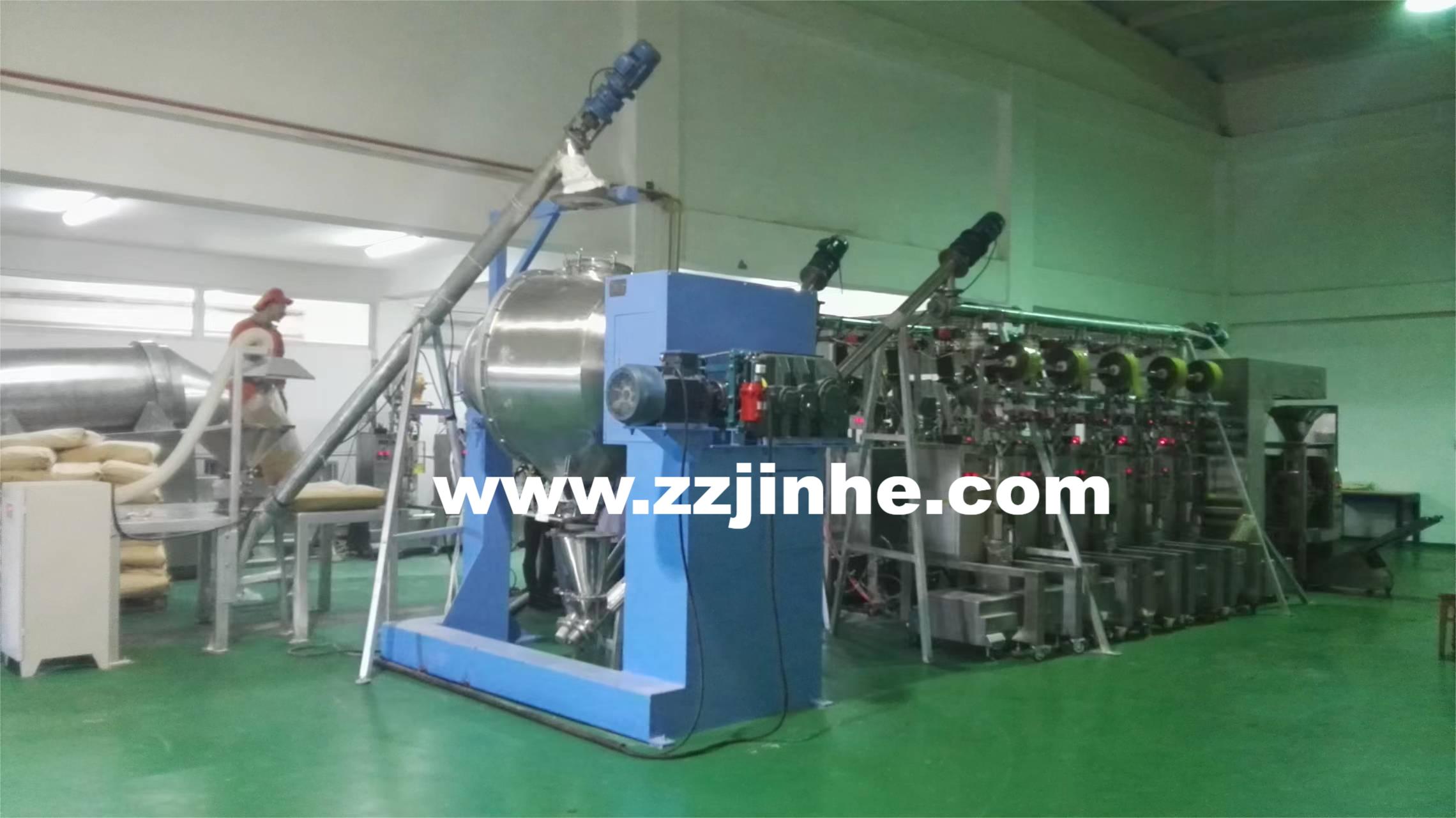 JHF-2 SS304真空送料機(jī)由JHX1500混合機(jī)給10臺(tái)全自動(dòng)包裝機(jī)上料。