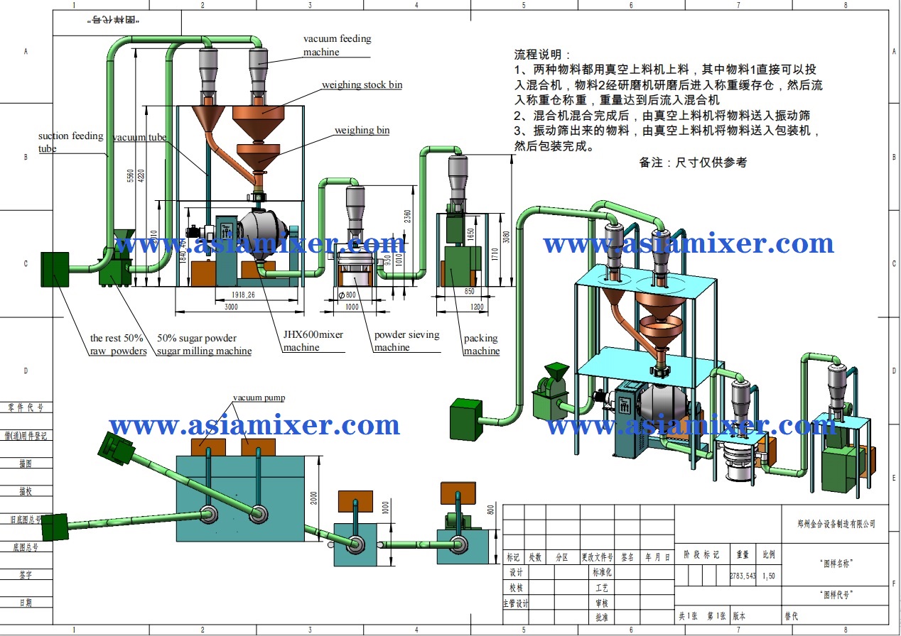 JHX600全自動粉體生產線 包括 萬能粉碎機 真空粉體上料機 JHX600 自動對接混合機 超聲波振動篩 粉體包裝機 等