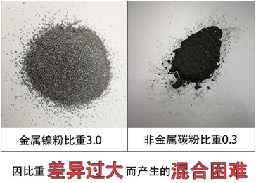 當粉體比重差異較大時就會出現(xiàn)輕、重粉不易混合均勻的難題。