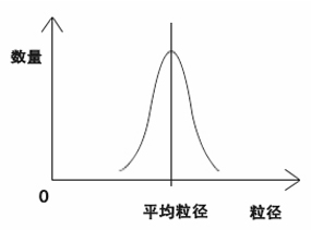 粉體粒徑的基本特征是以平均粒徑為中心的正態(tài)分布。即在平均粒徑附近數(shù)量最多,隨著粒徑的變化數(shù)量越來越少如下圖。