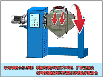 目前市場上的雙運動?混合機就是兼有這兩種混合原理的混合機。