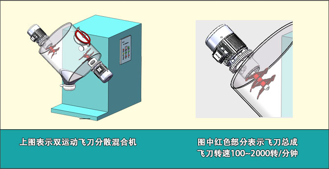 待混合粉體中含有纖維組織,使用普通的混合機難以混合均勻。這是因為普通混合機沒有打散這些纖維狀組織的機械能力,即使采用強制剪切型混合機因其剪切速度相對較低,也不能打散這些纖維狀組織,致使混合失敗。