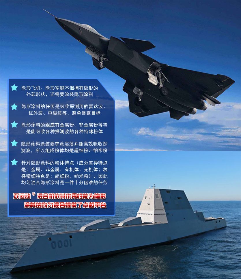 國家重器隱形飛機的隱形涂料和高新材料發展都需要雙運動?混合機來擔當混合重任